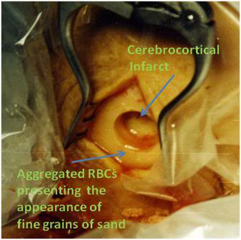 There is also osmotic injury which occurs during brain cryopreservation employing currently available vitrification techniques. The permeability of cell membranes to most cryoprotectants is very slow when compared with water. As a consequence, these osmotically active CPAs extract water from the intracellular space more rapidly than they can equilibrate with it, given the constraints imposed by the toxicity of these agents: namely, that they must be introduced at low temperatures (sometimes well below 0oC) and that the exposure time at these relatively high temperatures must not be too long. The relative impermeability of colligative cryoprotectants to brain tissue is not, as is commonly misunderstood, a function of the blood brain barrier (BBB). Most colligative CPAs freely cross the BBB because they are lipid soluble. Rather, it is due to the kinetics of water and CPA movement across the individual brain cell membranes. The multiply membrane wrapped myleinated axons that comprise the white matter pose a special diffusion barrier, in this respect. The cerebral dehydration that results from perfusion with high molarity CPA solutions causes occasional peri-capillary tears (Figure 11) as well as infrequent small tears within the brain parenchyma.