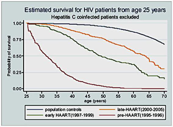 178) Lohse N, Hansen A-BE, Pedersen G, et al, Danish HIV Cohort Study. Median survival and age-specific mortality of Danish HIV-infected individuals: a comparison with the general population. In: Program and abstracts of the XVI International AIDS Conference; August 13-18, 2006; Toronto, Canada. Abstract MOPE0310. View poster: Download PDF