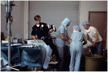 Figure 15: Jerry Leaf at left and Mike Darwin at right performing the initial examination of a patient stabilized remotely in Wisconsin and Transported to the facilities of Cryovita Laboratories in 1980.